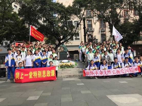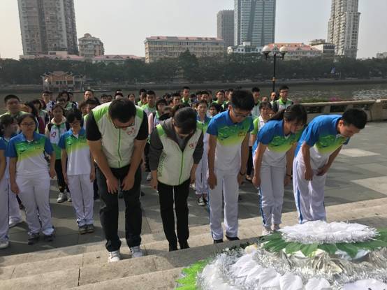 今年是纪念“六·二三”沙基惨案94周年,在镌刻着“勿忘此日”四个大字广州沙基惨案烈士纪念碑前,师生缅怀先烈反帝国主义斗争的革命精神,深感幸福生活来之不易,立志继承光荣传统,进一步增强爱党爱国情怀和历史责任感。在勇救落水青年而英勇牺牲的武警广州支队船艇大队副政治教导员郑益龙同志纪念碑前,师生怀着激动的心情再次重温了这位“中国好人”、 “为民献身的忠诚卫士”、全国道德模范的英勇事迹,为英雄在人民群众出现危难之时冲锋在前、见义勇为、舍生忘死的崇高品质深深感动。祭奠英烈活动在庄严、肃穆的气氛中进行,师生们集体肃立、默哀,表达对英烈们的无限哀思。