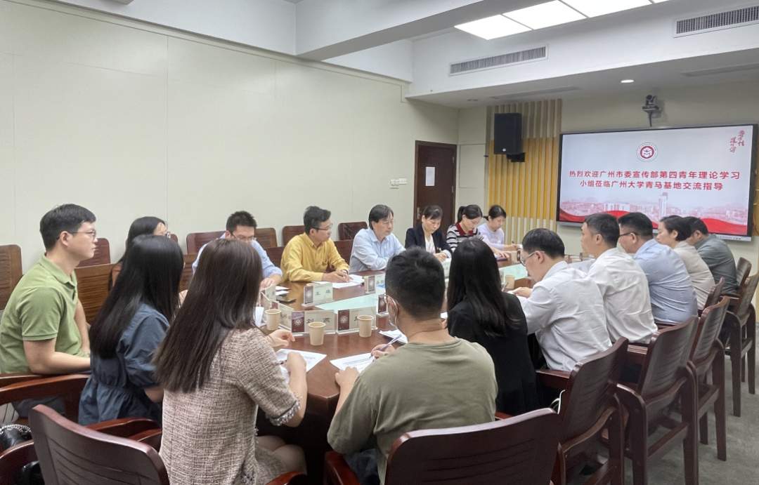 潘晓东首先介绍了到访目的和此次参加学习交流人员。罗明星对广州市委宣传部第四青年理论学习小组的到来表示热烈欢迎,并详细介绍了广州市青年马克思主义理论人才培养研究重点基地的建设情况。