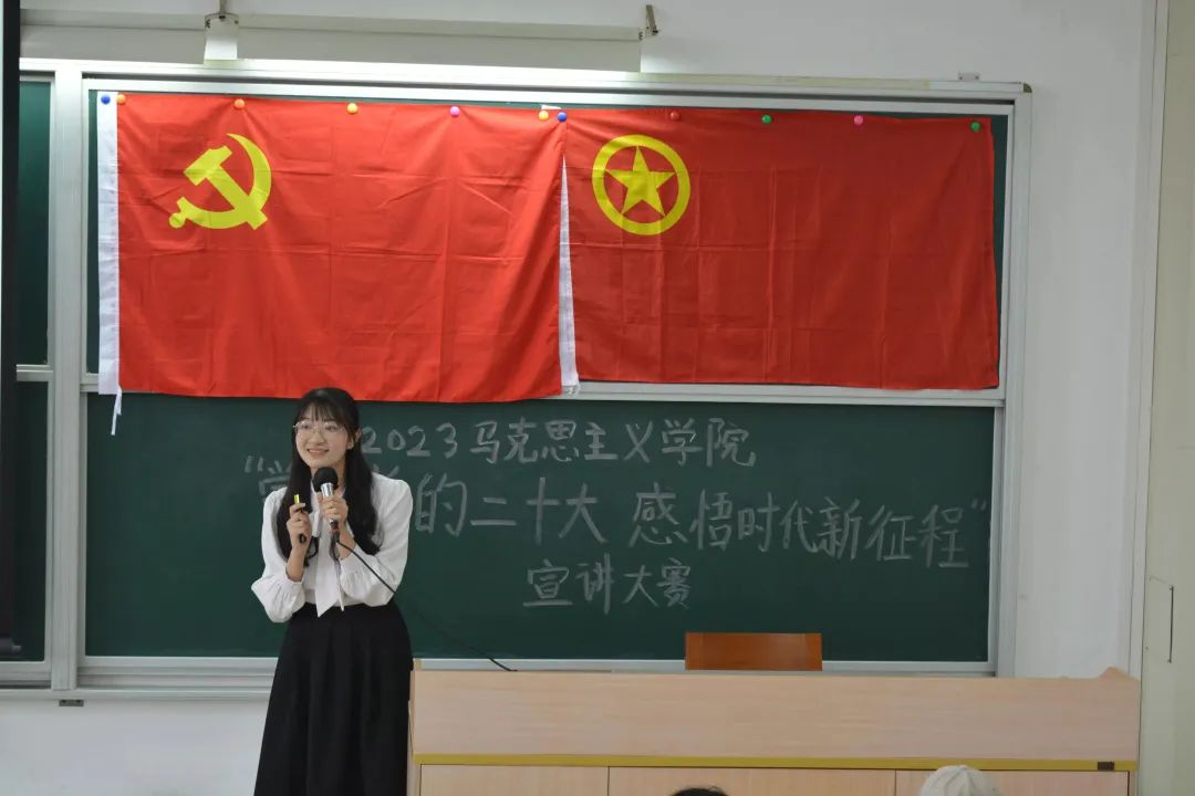 梅淑宁副书记提出,学习宣传贯彻党的二十大精神,是当前和今后一个时期的首要政治任务。作为马院学子,应当发挥专业优势,在学好、讲好党的二十大精神中作出表率。她充分肯定了同学们的学习成效,也分享了关于青年学生开展宣讲的理解:第一,讲小事不讲大事,尽量选择小切口,落到实处;第二,讲别人讲不出的事,挖掘自身的故事、身边的故事、家乡的故事;第三,讲打动人的事,结合听众的知识背景,做到内容平实而触动人心。她表示,学院将通过宣讲比赛选拔优秀队伍,组建马院第三届青年理论宣讲团,在校内外开展宣讲,以实际行动推动党的二十大精神入脑入心。