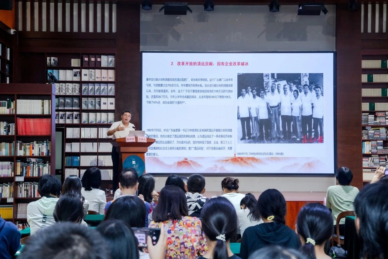 中国式现代化是什么?中国式现代化如何推进?11月2日上午10点,做爱视频 院长赵中源教授赴清远江心岛的北江讲堂,以《中国式现代化的历史逻辑与核心要义》为主题开展宣讲。