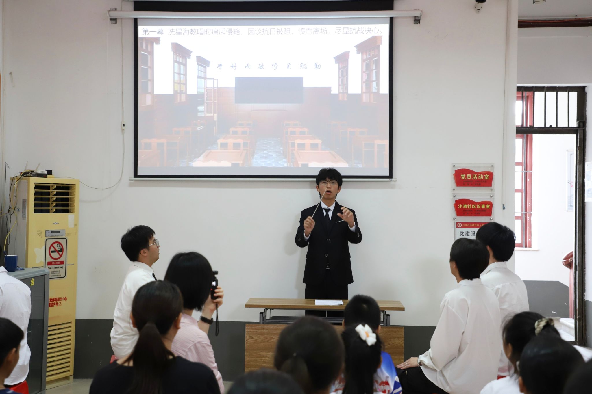 徐煜琴、梁梓鹏、刘晓彤、邝嘉琪朗诵的《百年沧桑》,将观众带回到百年前的中国。战火纷飞,硝烟弥漫,正是有无数英雄烈士抛头颅、洒热血,以青春之我,报青春之国,才逐渐唤来黎明。邱晓桐、冯津津、陈露榕、张钰豪共同演绎情景短剧《芙蓉花开英雄泪——女中先觉何小静》以声情并茂的现场表演,将何小静的英勇事迹娓娓道来,展现了这位女中豪杰的坚定意志和无私奉献精神,赢得了现场观众的热烈掌声。张家烽、唐小娟、何嘉豪、蔡桂林、阿依努尔·吐鲁洪、黄恭哲、傅辉彬、李思凡、李灵杰共同演绎情景短剧《冼星海:信仰为谱,家国共振》从番禺星海公园的纪念场景切入,回顾了人民音乐家冼星海的数段心路历程。结尾处的《黄河大合唱》以雄浑激昂的旋律,展现出中华儿女顽强拼搏、坚韧不拔的伟大精神,激荡着每一个观众的心灵,部分观众更激情澎湃地跟着歌唱了起来。
