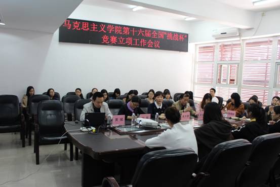 召开第十六届全国“挑战杯”竞赛立项工作会议,院长赵中源教授,校团委黄斌老师,思政系主任刘莉教授、院党委副书记朱晓军、立项申报团队及师生代表近60人出席了本次会议。