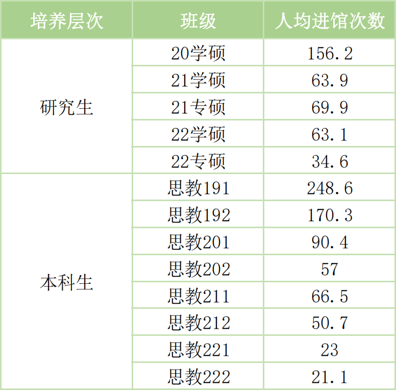 2022年度做爱视频 学生共进馆37751次,人均进馆78.2人次,同比增长23.1%。其中本科生80.8人次,研究生67人次。