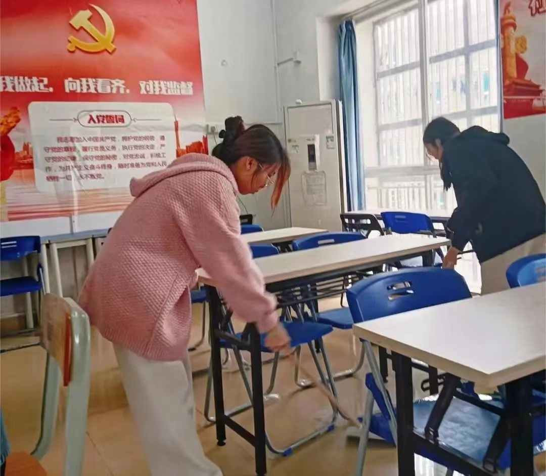 大家分工合作,在梅苑六栋“五室一站”及宿舍楼下公共区域,有序地展开了擦窗、清扫以及搬移杂物等劳动工作。同学们用实际行动洁净我们的生活环境,甚至细致到擦亮每一块银色提示牌子。