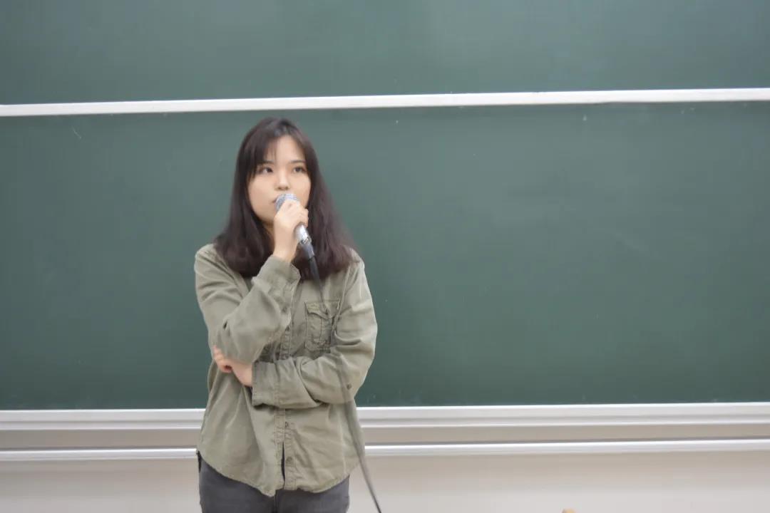学科思政专业的丁慧英同学分享考研经验。她以择校为分享起点,循序渐进地为同学们讲解了考研中选择与努力的重要性。关于考研院校的选择,丁同学提出要综合考虑意向专业、院校层次、地理位置、个人综合素质四个因素。同时,她为同学们梳理了考研过程的一些重要时间节点,并分享了自己的专业课复习与背诵技巧,为同学们提供了满满的备考干货。
