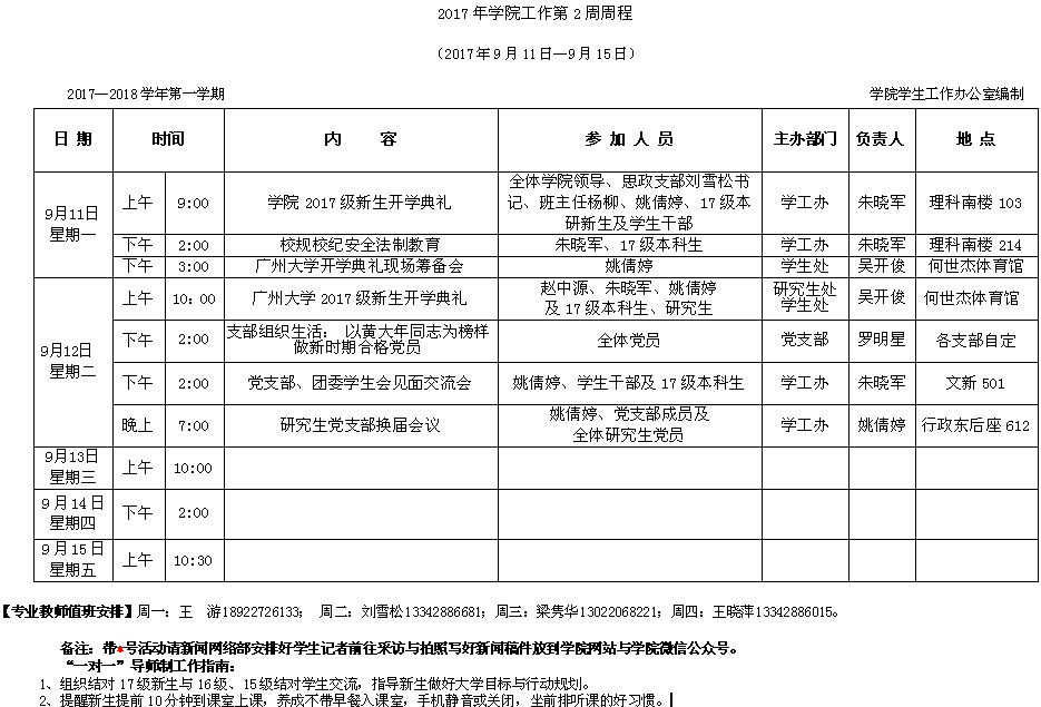 2017年学院工作第2周周程