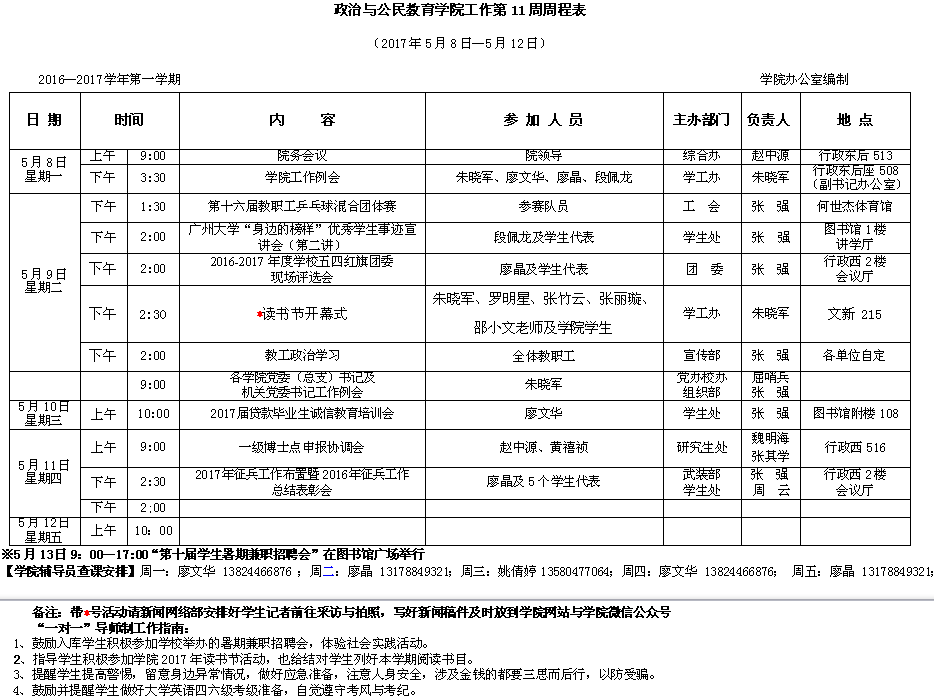政治与公民教育学院工作第11周周程表