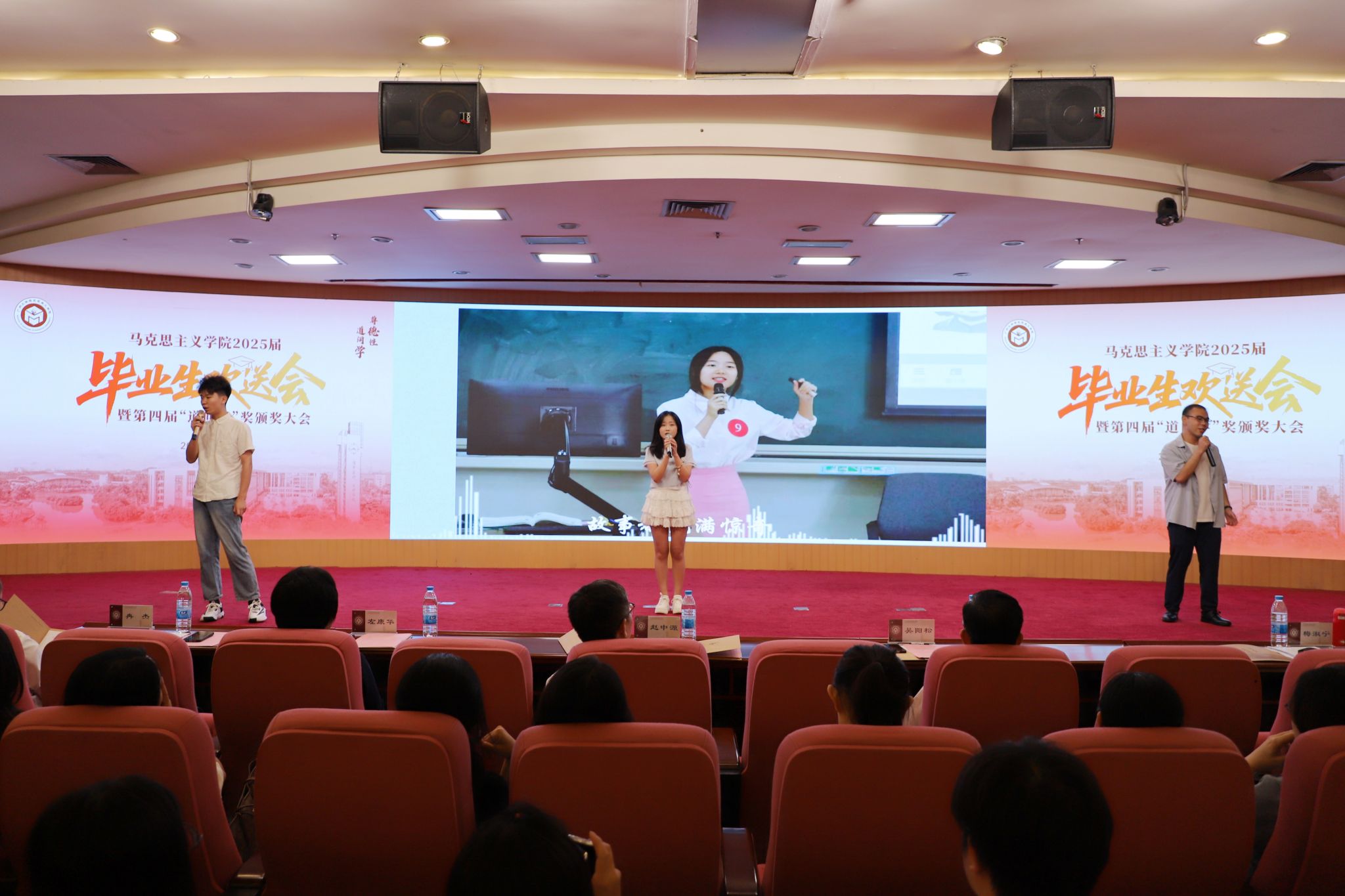 2025619日晚,做爱视频 2025届毕业生欢送会暨第四届道问学奖颁奖大会在图书馆副楼五楼报告厅隆重举行。学院党政班子成员、系部及行政办公室负责人、导师和班主任代表、辅导员、全体本研学生400余人参加大会。大会由学院副院长冉杰教授主持。