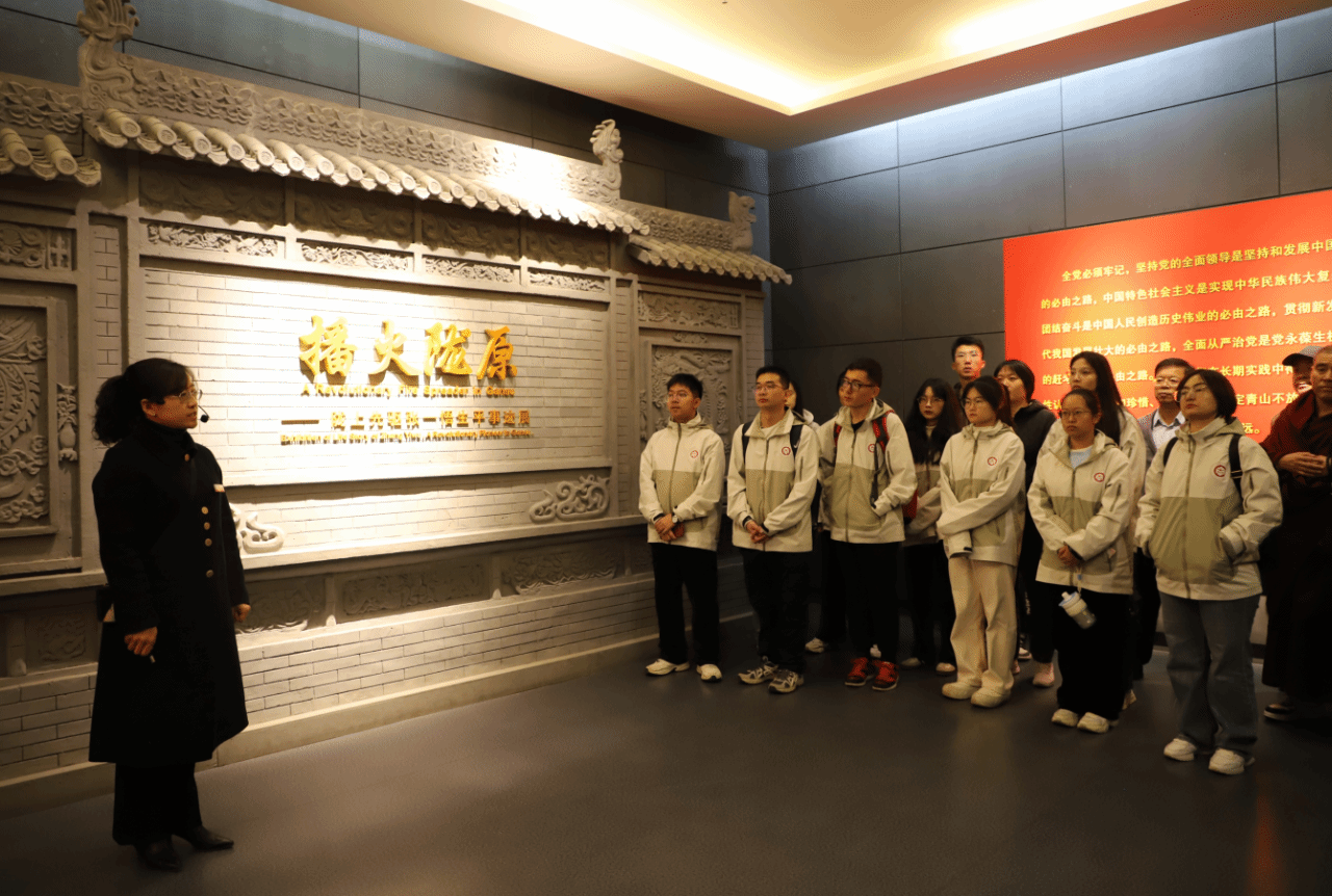 11月5日下午,访学团参观甘肃省博物馆。在《甘肃丝绸之路文明》展厅,耳畔似乎回响着悠扬的驼铃声,西风中古道苍茫,仿佛穿越千年,亲历那繁盛的商贸往来与文化交融。丝绸轻柔,瓷器光洁如玉,每一件珍贵的展品,都默默诉说着古老文明的辉煌篇章。在《红色甘肃》展厅,访学团通过雕塑、图片、文字等多种形式,深入了解到甘肃各族人民在中国共产党的领导下,实现了从贫穷落后到自立自强的光辉历史。同时,访学团还参观了《甘肃彩陶》《甘肃古生物化石》《甘肃佛教艺术》等基本陈列,深切感受到了西北地区独特的生态风貌与丰富多彩的历史文化底蕴。
