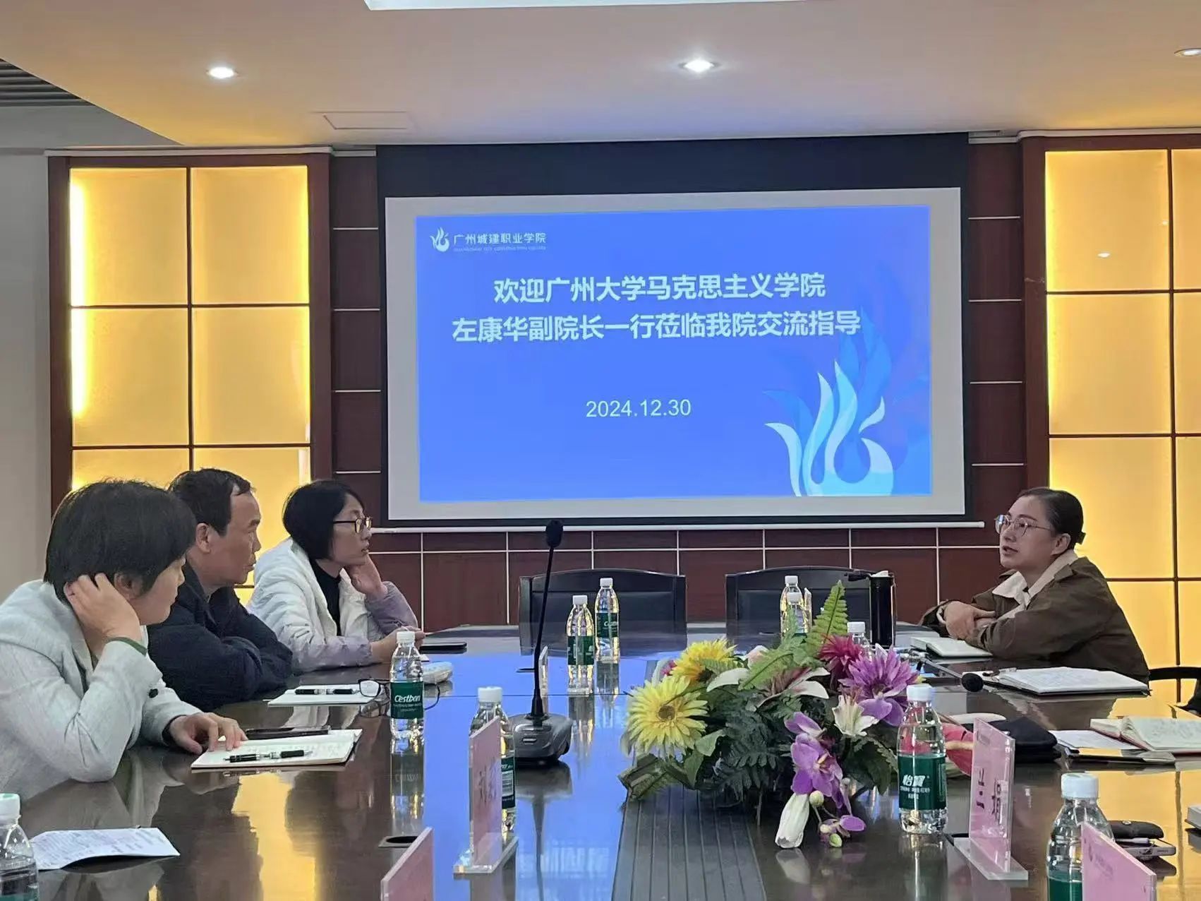 结对帮扶广州理工学院等五所民办高校思想政治理论课建设工作方案》,2024年12月30日至31日,由教学副院长左康华带队,刘莉教授、陈咸瑜副教授、李丽丽副教授、杨柳博士和邓妍博士等多位教学科研骨干组成工作组,先后赴广州软件学院、广州理工学院、广州华立科技职业学院、广州城建职业学院和广州华夏职业技术学院,就思政课与思政课教师队伍建设等开展调研。