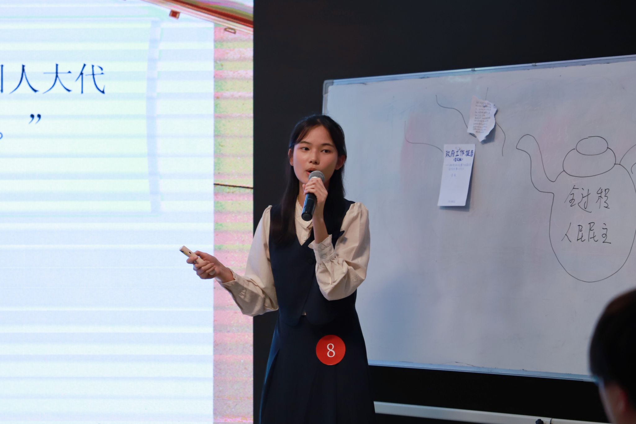 经过充足的赛前准备,十位选手依次登台进行教学展示。选手们以新颖的教学设计、严谨的教学逻辑、精美的课件展示、多元的教学互动为大家呈现了精彩的思政课堂,展现了马院学子良好的专业能力。展示结束后,评委老师们围绕教学内容对选手展开提问,并针对其教学设计的闪光点与不足之处进行点评和指导。