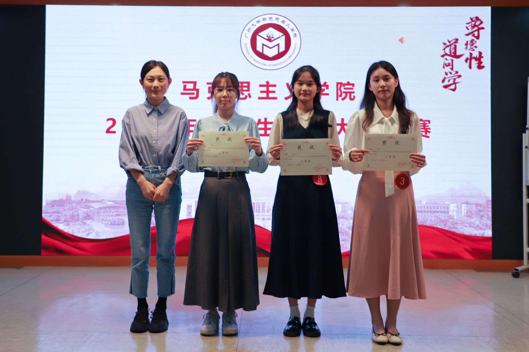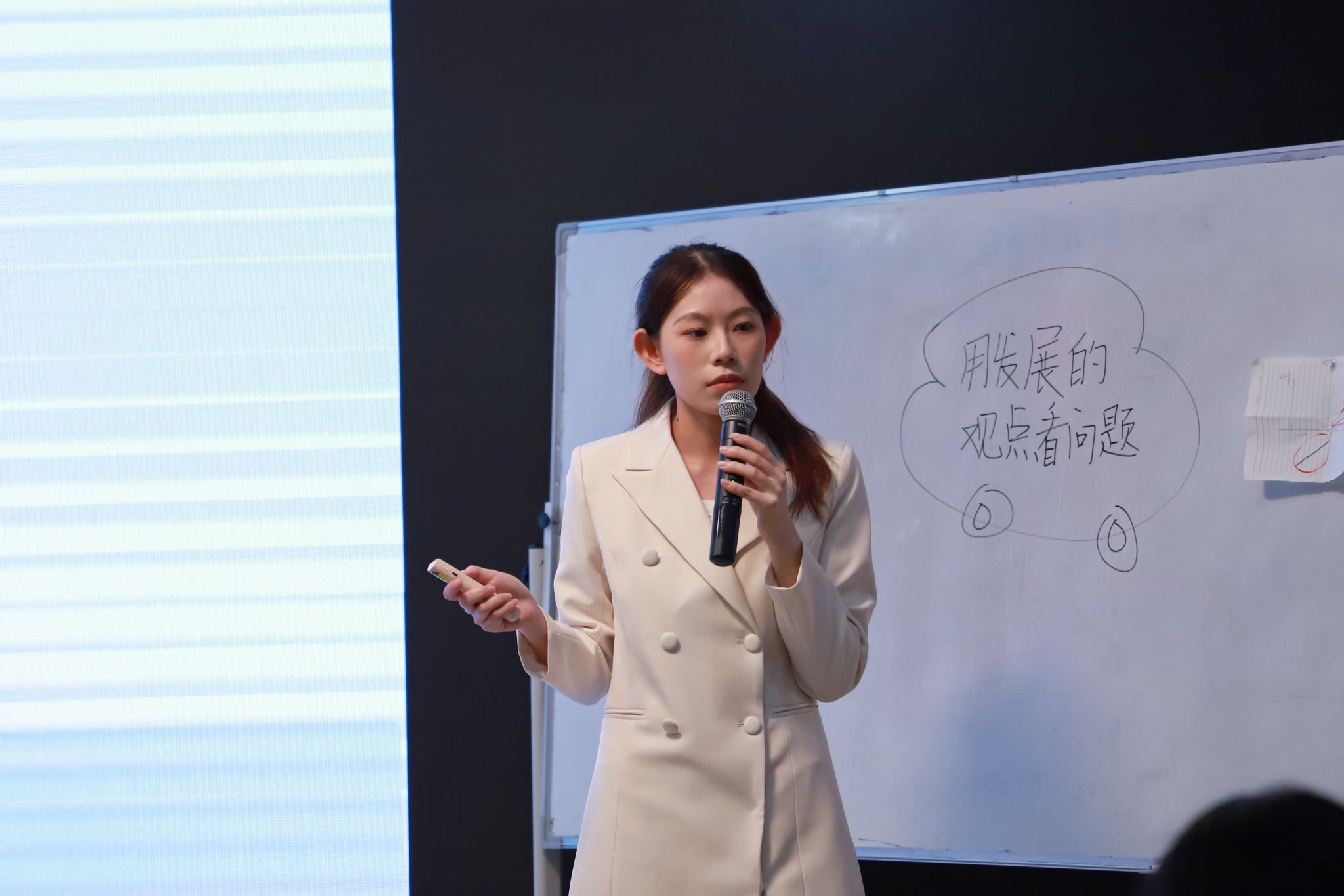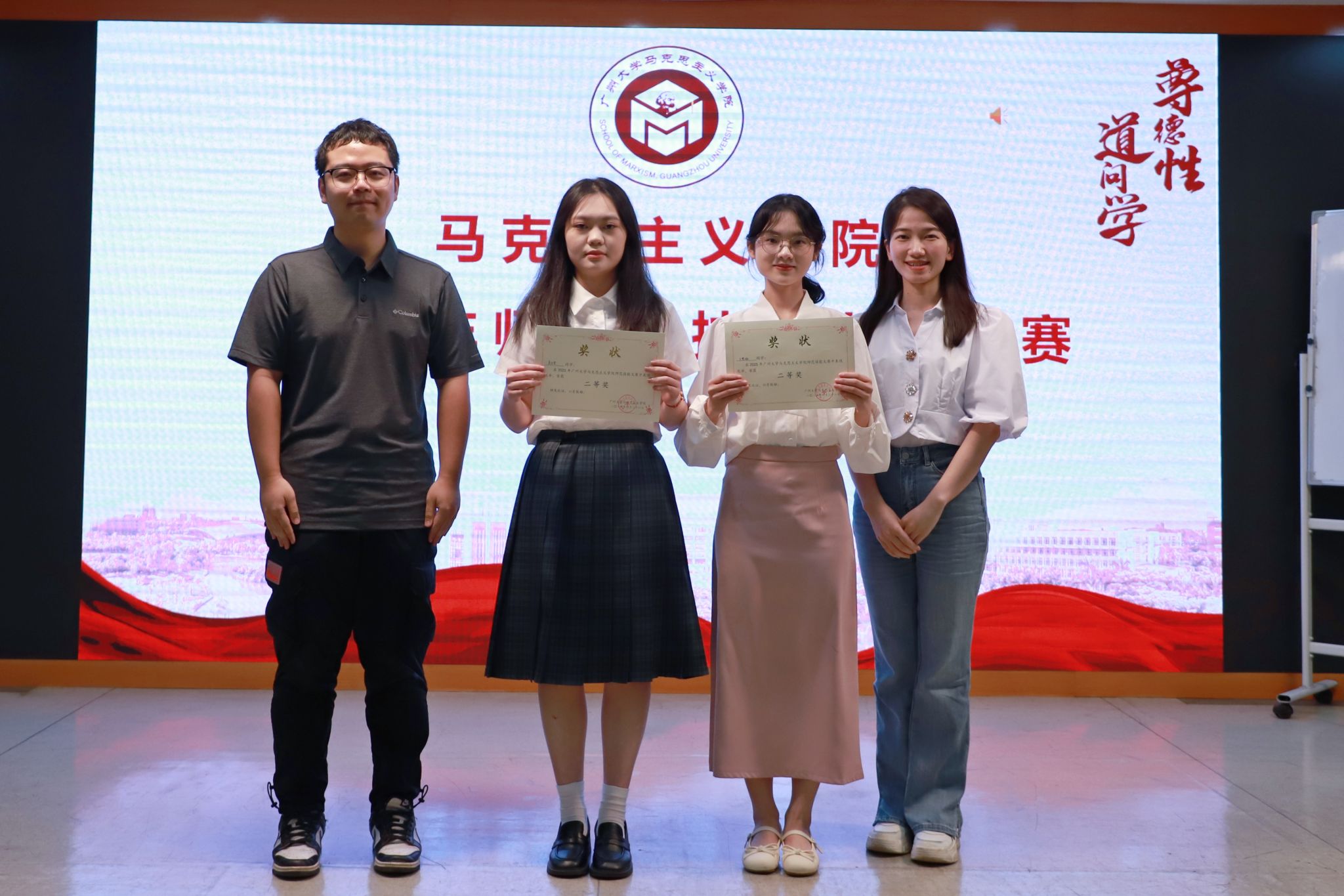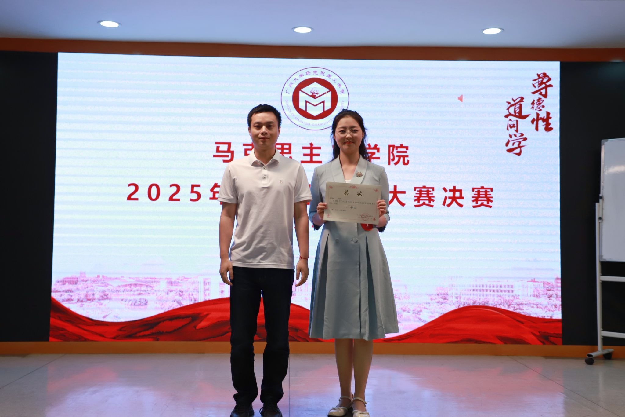 黄炬老师高度肯定了各位选手的付出与努力,并从各位选手展示中总结出了三个特点:一是立场坚定,做到“在马言马,在马用马”,体现了学以致教,利用马克思主义基本理论分析、阐释问题;二是理念新颖,以问题链驱动深度学习,体现了新课标导向下的职业素养;三是设计巧妙,利用生动形象的生活情境作课堂导入,打造生活化课堂。他指出,作为未来的思政课教师,要将价值观塑造融入到每一个课堂,要创新更要守正,让思政课既有高度又有温度。“教育不是灌输,而是点燃火焰。”黄炬老师借苏格拉底的名言寄语马院学子,希望同学们在照亮自己的同时也能照亮无数孩子的未来,期待在下届比赛看到更多具有理论深度和创新活力的选手。
