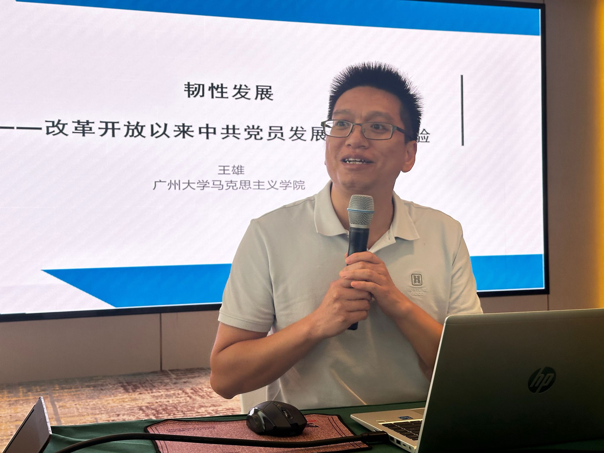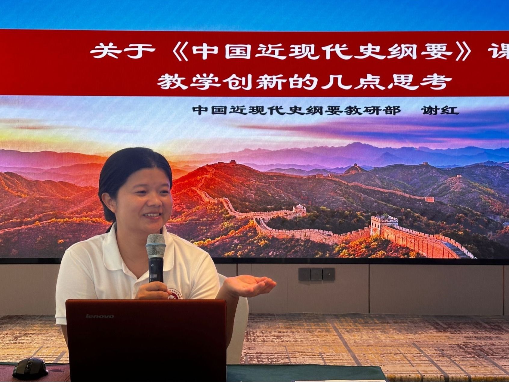 王雄老师以《改革开放以来中共党员发展机制》为题发言 李杰老师围绕如何将抗战精神融入《思想道德与法治》课进行探讨