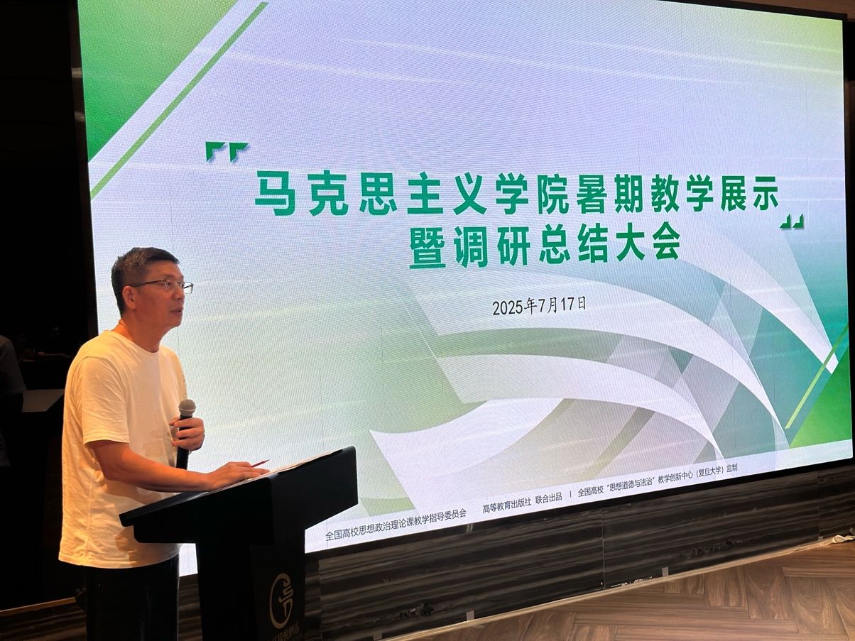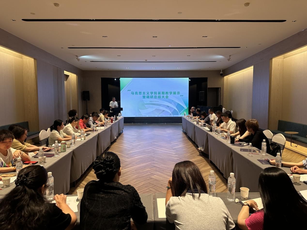 暑期教学展示暨调研总结大会。来自马克思主义基本原理教研室、马克思主义中国化教研室及思想政治教育系的三位教师代表邓妍、许可人、陈咸瑜分别以“精神之问:当代中国青年如何摆脱精神内耗”“抗日战争在世界反法西斯战争中的历史地位”“感谢思想·塑造思想——思政课教学的点滴感悟”为主题,作了精彩的教学展示。
