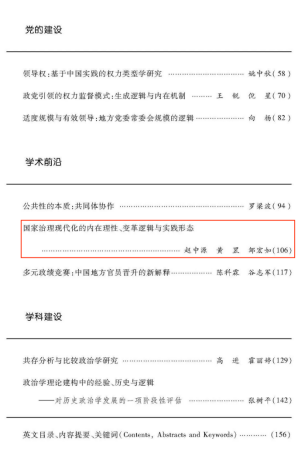 赵中源教授、黄罡博士论文《国家治理现代化的内在理性、变革逻辑与实践形态》,这是近年来赵中源教授团队在《政治学研究》发表的第5篇国家治理现代化研究学术论文。