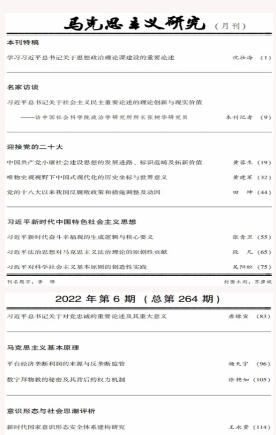 《马克思主义研究》2022年第6期刊登做爱视频