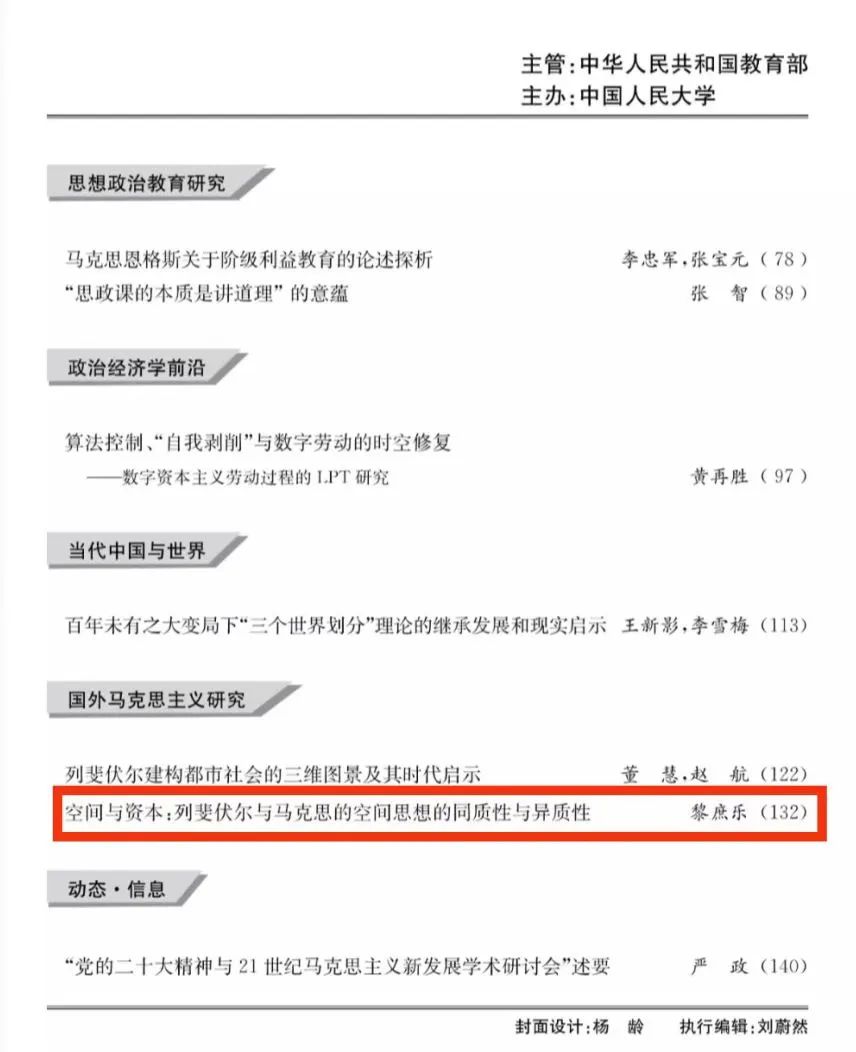 黎庶乐教授论文《空间与资本: 列斐伏尔与马克思的空间思想的同质性与异质性》。