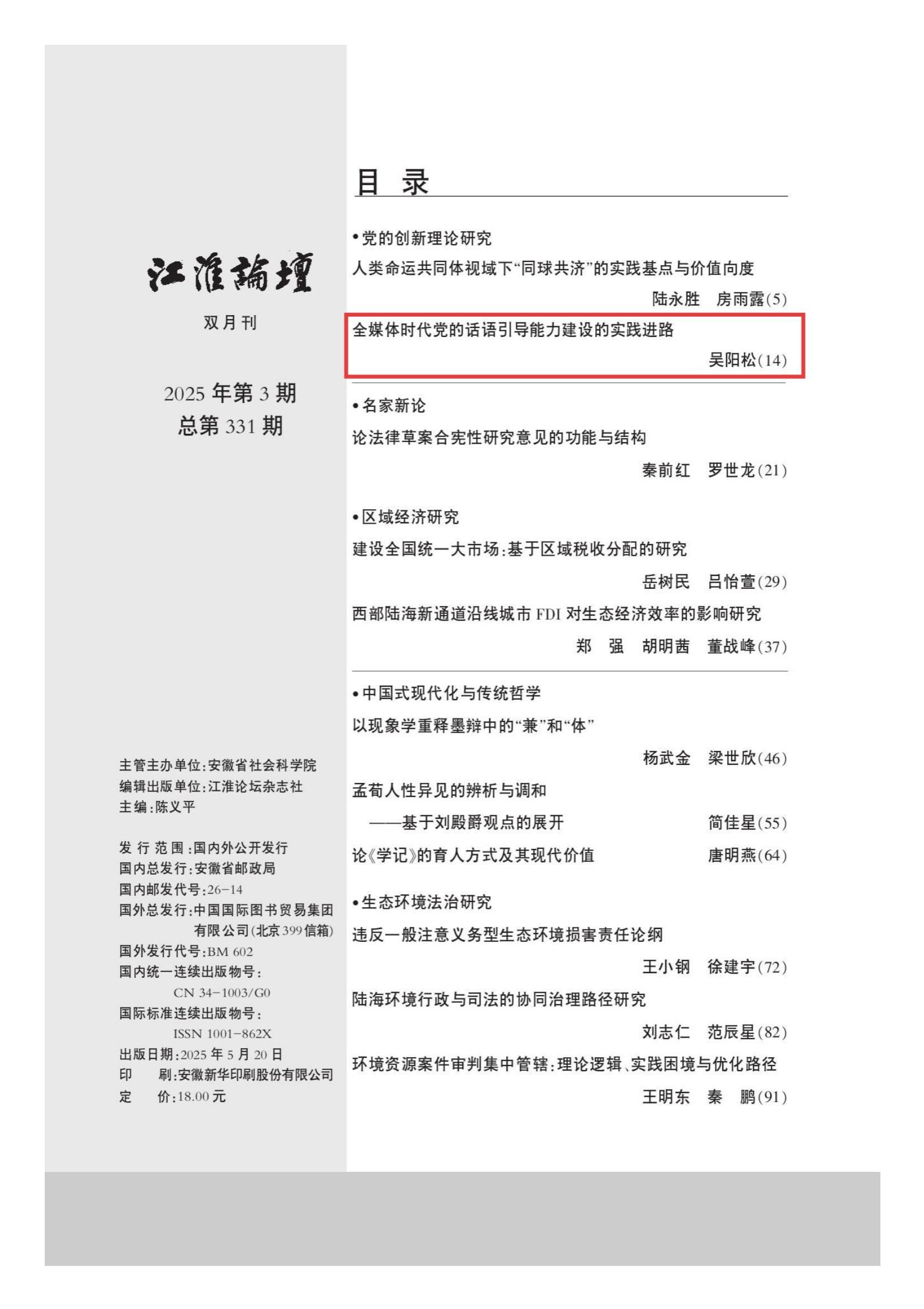吴阳松教授论文《全媒体时代党的话语引导能力建设的实践进路》。