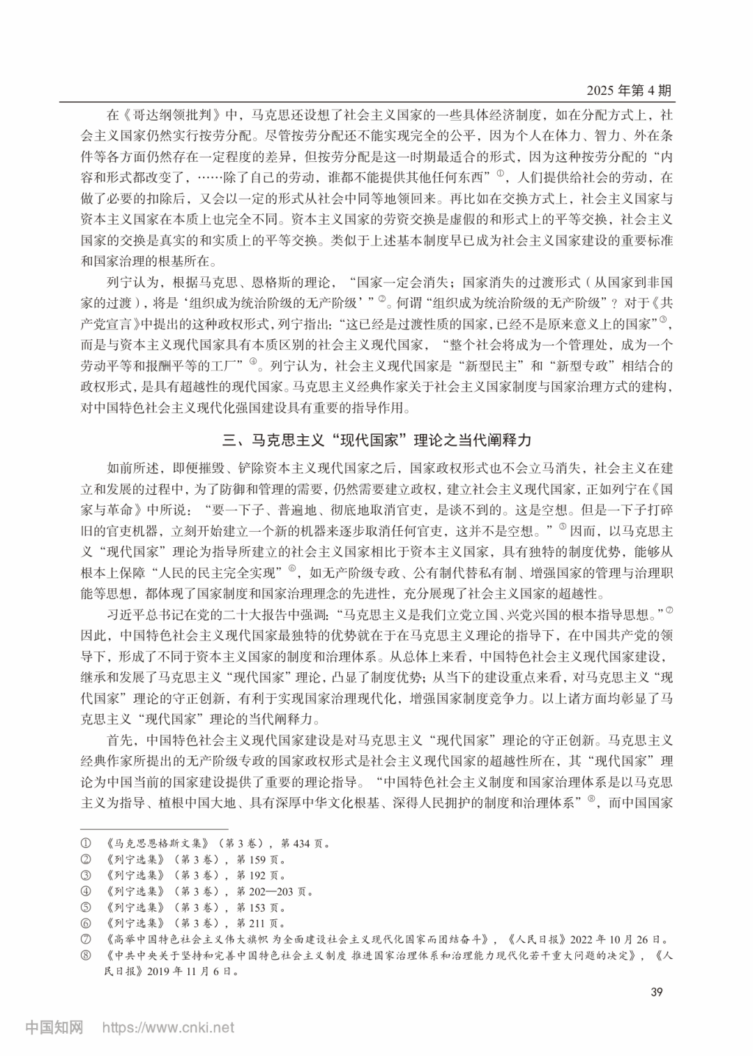 摘要:马克思主义“现代国家”理论具有批判和建构两个维度。批判维度针对资本主义国家,马克思主义经典作家认为资本主义现代国家具有虚幻性,无产阶级必须打碎资本主义国家机器,建立起无产阶级专政的国家政权形式并最终实现国家向社会的复归;建构维度针对社会主义国家,马克思、恩格斯对无产阶级政权进行过理论建构,列宁将这种政权形式称之为“半国家”。马克思主义经典作家认为,社会主义现代国家在政权形式、所有制形式和国家治理方式等方面均具有明显的超越性,是新型现代国家。马克思主义“现代国家”理论具有当代阐释力,其揭露了资本主义现代国家的虚幻本质,揭示了人类社会发展的总体趋势,对建设中国特色社会主义现代国家,实现国家治理现代化,提升国家制度竞争力,具有重要理论指导作用。